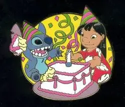 Lilo & Stitch/Birthday is an Open Edition pin from the Holiday Pin Collection pin series. It was originally released on , 2005 and was available from Multiple Sources (WDW, DLR, etc.).