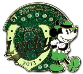 2013 - Mickey Mouse is a Limited Edition (LE) 3000 pin from the St. Patrick's Day pin series. It was originally released on , 2013 and was available from Multiple Sources (WDW, DLR, etc.).