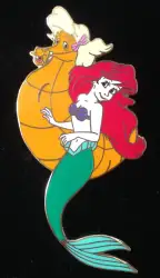 Ariel & Seahorse is a Limited Edition (LE) 1500 pin from the Little Mermaid Wooden Boxed Pin Set pin series. It was originally released on , 2004 and was available from Multiple Sources (WDW, DLR, etc.).