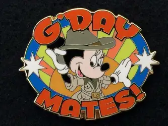 G'Day Mates - Minnie Mouse is a Limited Edition (LE) pin from the Adventures by Disney - Discovery Down Under pin series. It was originally released in January, 2011 and was available from Adventures by Disney .