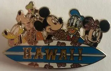 Fab 5 Behind Surfboard is an Open Edition pin from the Disney Store Hawaii pin series. It was available from Disney Store US .