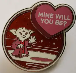 Yoda Valentine - Mine Will You Be? is an Open Edition pin from the Valentine's Day pin series. It was originally released on , 2015 and was available from Multiple Sources (WDW, DLR, etc.).