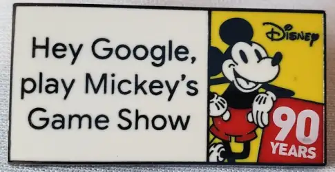 Hey Google, Play Mickey's Game Show is an Open Edition pin from the Mickey the True Original Exhibition pin series. It was originally released in November, 2018 and was available from an Officially Licensed Disney trading pin vendor (see description for more information).