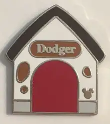 Dodger is an Open Edition pin from the 2019 Hidden Mickey - Doghouses pin series. It was originally released in July, 2019 and was available from Multiple Sources (WDW, DLR, etc.).