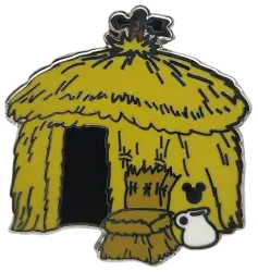 Fifer Pig's Straw House is an Open Edition pin from the 2019 Hidden Mickey - Three Little Pigs pin series. It was originally released on , 2019 and was available from Disneyland Resort .