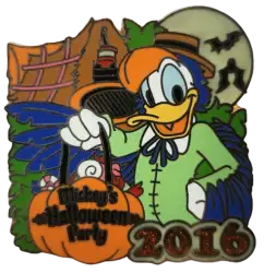 Donald as Tiki Room Barker Bird is a Limited Edition (LE) 1000 pin from the Mickey's Halloween Party 2016 4 Pin Booster Set pin series. It was originally released on , 2016 and was available from Disneyland Resort .