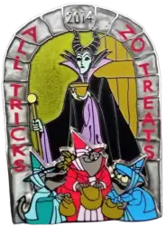 Maleficent and Goons is a Limited Edition (LE) 3000 pin from the All Tricks, No Treats Collection pin series. It was originally released on , 2014 and was available from Multiple Sources (WDW, DLR, etc.).