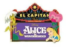 Alice in Wonderland is a Limited Edition (LE) 400 pin from the El Capitan Marquee Series pin series. It was originally released on , 2019 and was available from Disney Studio Store Hollywood / Soda Fountain .