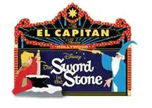 The Sword and the Stone is a Limited Edition (LE) 400 pin from the El Capitan Marquee Series pin series. It was originally released on , 2019 and was available from Disney Studio Store Hollywood / Soda Fountain .