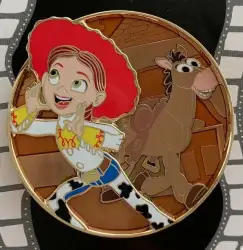Jessie and Bullseye is a Limited Edition (LE) 400 pin from the Mane-N-Friends pin series. It was originally released on , 2019 and was available from Disney Studio Store Hollywood / Soda Fountain .
