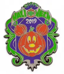 Mickey Mouse Jack O'Lantern is an Open Edition pin from the Halloween 2019 pin series. It was originally released on , 2019 and was available from Multiple Sources (WDW, DLR, etc.).
