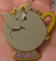 Pin features Mrs. Potts from Beauty and the Beast