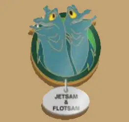 Jetsam & Flotsam Only is a Limited Edition (LE) 250 pin from the Fairy Tails 2019 Event - Villain Pets Box Set pin series. It was originally released on , 2019 and was available from Walt Disney World .