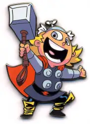 Thor is a Limited Release pin from the SDCC 2019 - Marvel Skottie Young pin series. It was originally released on , 2019 and was available from an Officially Licensed Disney trading pin vendor (see description for more information).