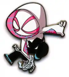 Spider Gwen is a Limited Release pin in the Spider-Verse Pin Set 4-pin set from the SDCC 2019 - Marvel Skottie Young pin series. It was originally released on , 2019 and was available from an Officially Licensed Disney trading pin vendor (see description for more information).