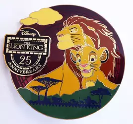 Young and Adult Simba on Savanna is a Limited Edition (LE) 150 pin from the The Lion King 25th Anniversary pin series. It was originally released on , 2019 and was available from Disney Employee Center .