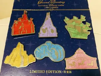 Grand Opening 6-pin set is a Limited Edition (LE) 300 6-pin set from the Shanghai Grand Opening 6-pin set pin series. It was originally released in June, 2016 and was available from Shanghai Disney Resort .