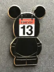 Friday the 13th is an Open Edition pin from the Vinylmation Jr. Mystery Collection (Series 3: Good Luck / Bad Luck) pin series. It was originally released on , 2011 and was available from Multiple Sources (WDW, DLR, etc.).