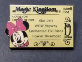 "D" Coupon is an Open Edition pin from the Cast Lanyard Collection III - Magic Kingdom Tickets (No Mickey Icon) pin series. It was originally released on , 2005 and was available from Walt Disney World .