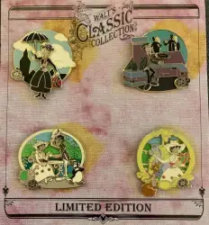 Mary Poppins is a Limited Edition (LE) 2000 4-pin set from the Walt's Classic Collection pin series. It was originally released on , 2010 and was available from Multiple Sources (WDW, DLR, etc.).