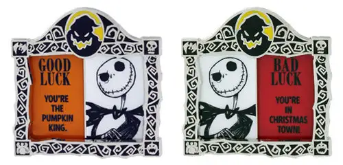 Jack Skellington is a Limited Edition (LE) 1000 pin from the Good Luck, Bad Luck Slider Series pin series. It was originally released on , 2013 and was available from Walt Disney World .