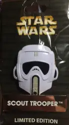 Scout Trooper is a Limited Edition (LE) 4000 pin from the Star Wars Helmets - Pin of the Month pin series. It was originally released on , 2018 and was available from Multiple Sources (WDW, DLR, etc.).