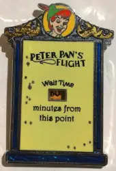 Peter Pan's Flight Ride is a Limited Edition (LE) 300 pin from the Wait Time Sign pin series. It was originally released on , 2007 and was available from Walt Disney Imagineering .