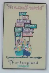 It's a Small World is a Limited Edition (LE) 1500 pin from the Framed Attraction Poster pin series. It was originally released on , 2003 and was available from Disneyland Resort .