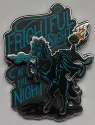 Headless Horseman - Frightful Sight in the Night is a Limited Edition (LE) 2500 pin from the Halloween 2019 pin series. It was originally released on , 2019 and was available from Disneyland Resort .