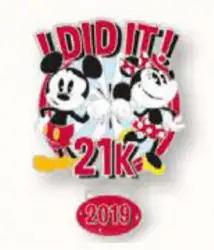 I Did It! - 21K Mickey & Minnie is a Limited Edition (LE) 700 pin from the runDisney: Disneyland Paris Run Weekend pin series. It was originally released on , 2019 and was available from Disneyland Resort Paris .