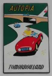 Autopia is a Limited Edition (LE) 1500 pin from the Framed Attraction Poster pin series. It was originally released on , 2003 and was available from Disneyland Resort .