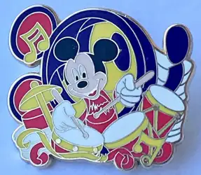 Mickey is an Open Edition pin from the Soundsational Parade Mystery Collection pin series. It was originally released on , 2012 and was available from Disneyland Resort .