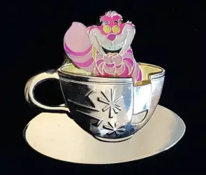 Mad Tea Party (Cheshire Cat) is a Limited Release pin from the Golden Vehicle Collection pin series. It was originally released on , 2005 and was available from Disneyland Resort .