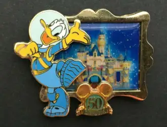 Donald Duck - Astronaut is an Open Edition pin from the Happiest Homecoming On Earth Framed Castle Collection pin series. It was originally released on , 2005 and was available from Disneyland Resort .