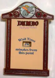 Dumbo the Flying Elephant Ride is a Limited Edition (LE) 300 pin from the Wait Time Sign pin series. It was originally released on , 2008 and was available from Walt Disney Imagineering .