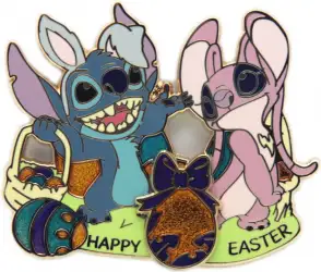 Stitch and Angel is a Limited Edition (LE) 150 pin from the Easter 2009 pin series. It was originally released on , 2009 and was available from Disney Studio Store Hollywood / Soda Fountain .