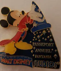 Passeport Annuel Fantasia - Sorcerer Mickey is an Open Edition pin from the Walt Disney Studios Park pin series. It was originally released on , 2002 and was available from Disneyland Resort Paris .