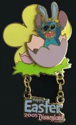 Stitch is a Limited Edition (LE) 1500 pin from the Easter 2005 pin series. It was originally released on , 2005 and was available from Disneyland Resort .