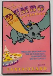 Dumbo is a Limited Edition (LE) 1500 pin from the Framed Attraction Poster pin series. It was originally released on , 2005 and was available from Disneyland Resort .