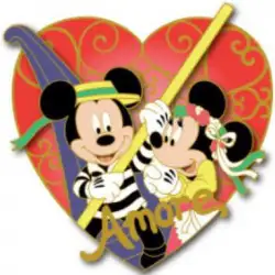 Mickey and Minnie (Surprise) is a Limited Edition (LE) 150 pin from the Language of Love pin series. It was originally released on , 2018 and was available from Disney Studio Store Hollywood / Soda Fountain .