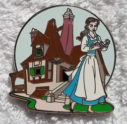 Belle in Blue Dress at Her Cottage is an Open Edition pin from the New Fantasyland Beauty and the Beast Mystery Collection pin series. It was originally released in December, 2012 and was available from Walt Disney World .