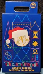 Unopened Box is a Limited Release pin from the It's A Small World Holiday Mystery Pin Collection 2019 pin series. It was originally released on , 2019 and was available from Disneyland Resort .