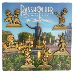 Chip and Dale, Donald, Pinocchio, Dumbo, Briar Rabbit, Minnie - Gold Statues Set is an Open Edition 0-pin set from the Annual Passholder Ticket to Tour Disneyland pin series. It was originally released on , 2016 and was available from Walt Disney World .
