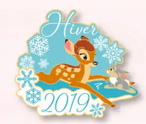 Hiver 2019 Bambi and Thumper is a Limited Edition (LE) 700 pin from the Disneyland Paris Seasons pin series. It was originally released on , 2019 and was available from Disneyland Resort Paris .