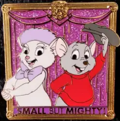 Small but Mighty! Mystery Collection - Bianca and Bernard CHASER is a Limited Edition (LE) 250 pin in the Small but Mighty! Mystery Collection - Unopened Box 16-pin set from the 2014 Imagination Gala Pin Event pin series. It was originally released on , 2014 and was available from Walt Disney World .