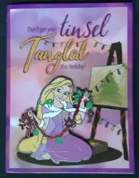 Rapunzel Tinsel Tangled is a Limited Edition (LE) 4000 pin from the Greeting Card Tiered Collection pin series. It was originally released on , 2019 and was available from Multiple Sources (WDW, DLR, etc.).