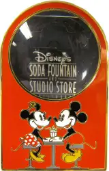 Disney's Soda Fountain Logo Magnifying Pin (Surprise) is a Limited Edition (LE) 500 pin from the Disney Soda Fountain pin series. It was originally released on , 2010 and was available from Disney Studio Store Hollywood / Soda Fountain .