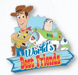 Buzz & Woody is a Limited Edition (LE) 700 pin from the World's Best Friends pin series. It was originally released on , 2019 and was available from Disneyland Resort Paris .