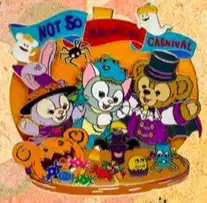 Duffy & Friends is a Limited Edition (LE) 500 pin from the Not So Haunting Carnival pin series. It was originally released on , 2019 and was available from Hong Kong Disneyland .