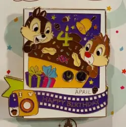 April - Chip 'n Dale is an Open Edition pin from the SDR - Happy Birthday Series pin series. It was originally released on , 2019 and was available from Shanghai Disney Resort .